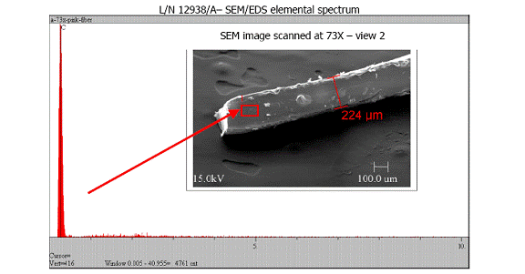 - Segnala su: esame, misure microscopiche e analisi spettrografica di più fibre Dozen inviati da IHI, LLC, Lakewood, CA.