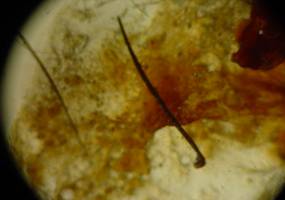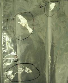 I campioni prelevati da "BB", 8-14-06 Attenzione: Minaccia Biohazard. Non male (se c'è fibra), ma è caduto fuori della sua gamba
