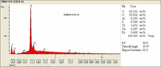 - Sodio è presente con alluminio significativo, fosforo e zolfo principalmente. Chloride è presente con il calcio. Calcio non era presente in 12.938-1, mentre il rame era presente.